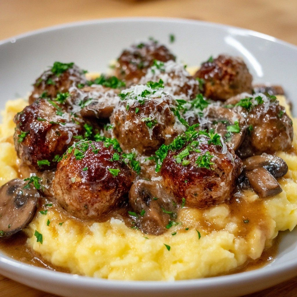 - Plate the meatballs in a shallow dish, pour the mushroom gravy over them, and serve immediately. Pair with creamy mashed potatoes, buttered noodles, or a simple green salad. The dish is best enjoyed hot, with the gravy still shimmering on the surface. If you’re serving a crowd, keep the meatballs warm in a low oven (200°F) while you finish the final sauce.