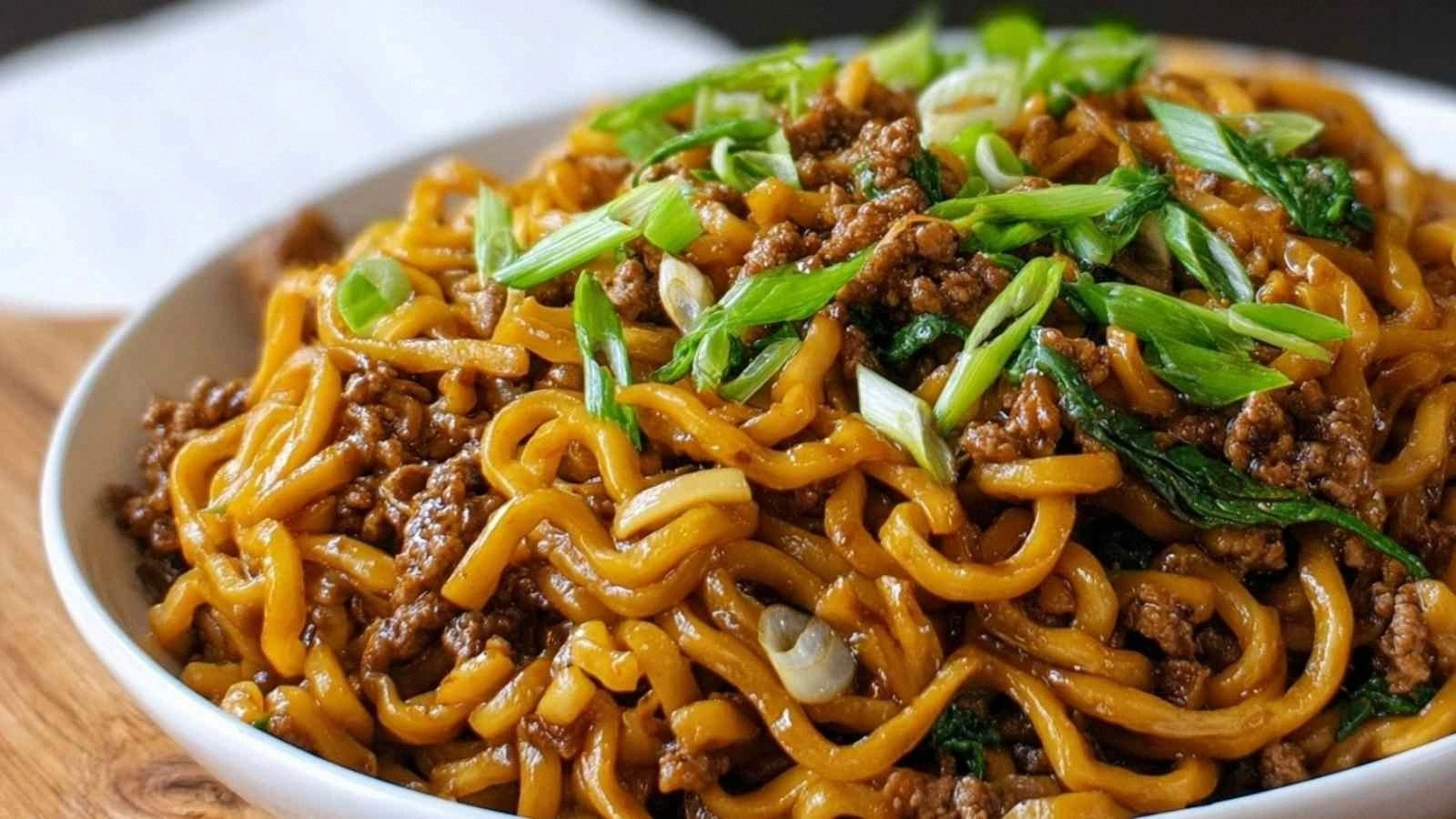 Picture this: the sizzle of garlic and ginger hitting the pan, the aroma of toasted sesame oil mingling with the sweet undertones of hoisin sauce, and the crunch of green onions that crackle like fresh snow. The noodles, cooked to al dente perfection, coat the meat in a glossy sauce that feels like velvet on the tongue. Every bite is a harmony of savory, slightly sweet, and umami‑rich notes that dance together. If you’re a fan of Asian‑inspired dishes with a protein punch, this is the moment you’ve been waiting for.