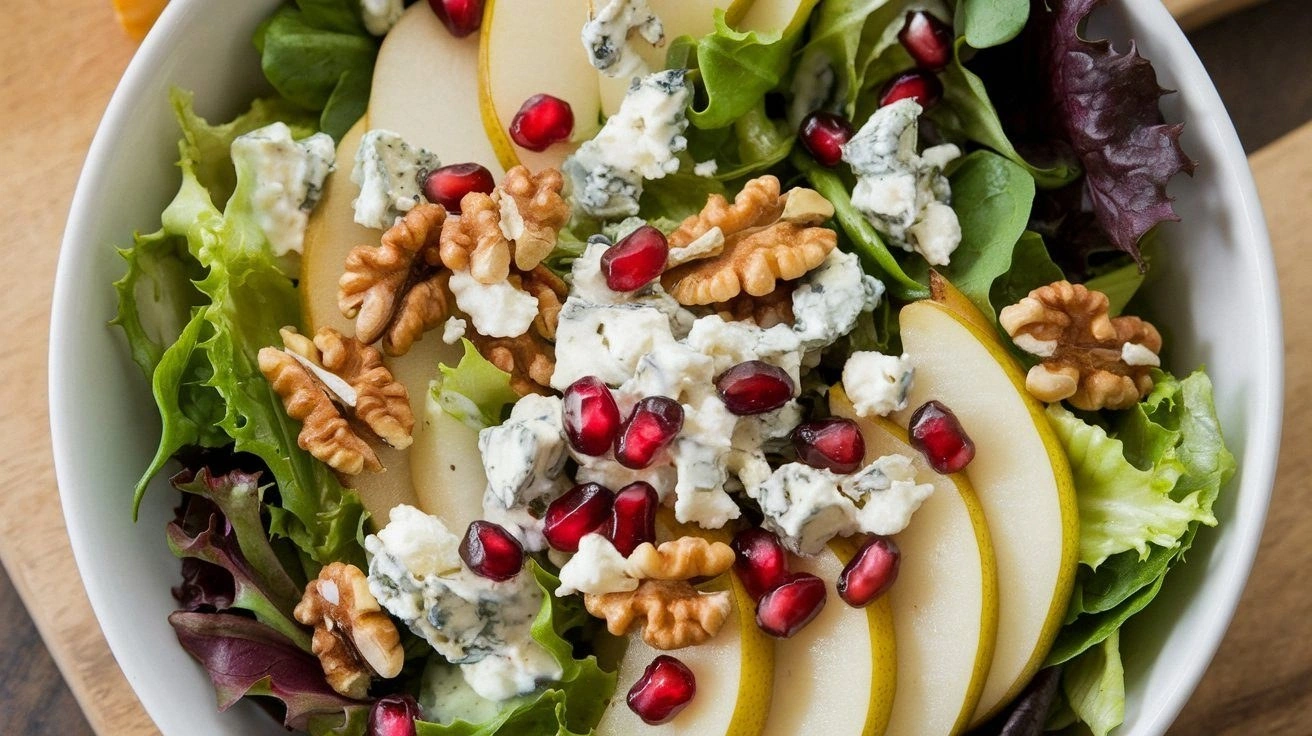 The pears are the star of the show; they bring natural sweetness that balances the savory elements. Choose firm, fragrant pears like Bosc or Anjou for the best texture. If you skip them, the salad will feel like a plain green bowl with no punch. For an extra layer of flavor, lightly caramelize the pear slices in a hot pan with a touch of honey before tossing them with the dressing.